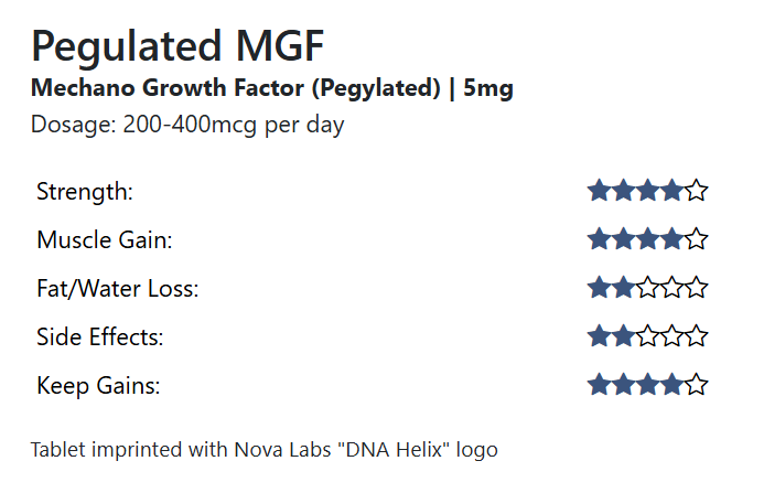 Nova Labs Peg MGF 5mg vial enhances muscle recovery and longevity. Inject 200–500mcg 2–3 times weekly—buy now!